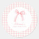 Pink bow and gingham preppy baby shower classic round sticker