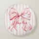 Pink Bow and Stripes Personalized Round Cushion