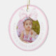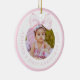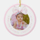 Capture a precious memory with this charming ceramic ornament, perfect for celebrating a baby's special milestones. Featuring a sweet photo framed by a soft pink bow, this keepsake ornament adds a touch of whimsy and warmth to any holiday decor. Ideal for 'Baby's First Christmas' or as a thoughtful gift for new parents, this ornament is made of high-quality ceramic with a glossy finish that will last for years to come. Personalise it with a photo for a unique and memorable addition to your holiday collection