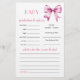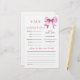 Watercolor Pink Bow Ribbon Baby Predictions and Advice Game Card. Matching items available.