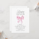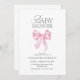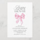 Celebrate the upcoming arrival of a sweet baby girl with this timeless and elegant baby shower invitation. Featuring a soft pink satin-style bow and graceful script typography, this design blends classic charm with modern minimalism. The clean white background allows the delicate details to shine, creating a refined look that’s perfect for a traditional, chic, or feminine baby shower theme.