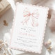Sweet baby shower invitation that features an elegant pink bow. Choose the scallopped edges for a whimsical finish.