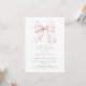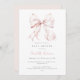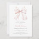 Minimal baby shower invitation that features an elegant pink bow and pink background. Add you registry QR code to the back side
