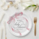 Add an elegant touch to your baby shower with these customisable paper plates, featuring a soft pink watercolor bow and delicate script calligraphy. Perfect for a coquette-inspired or classic baby girl shower, these paper plates can be personalised with the mum-to-be’s name and baby shower date, making them a stylish and memorable addition to your table setting.