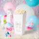 Cute pink bow baby shower favour boxes for popcorn or candy with scallopped edges.