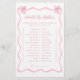 Make your celebration unforgettable with this Personalised Pink Bow Baby Shower Would She Rather Game! Perfect for adding fun to your baby shower game lineup, this adorable game is a must-have for baby shower game ideas. Featuring a delicate pink bow design, it’s ideal for a pink bow baby shower theme or bow baby shower. Delight guests with this elegant touch for a pink baby shower ideas, bow party, or coquette baby shower theme that everyone will adore!