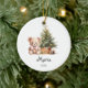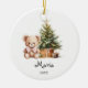 Celebrate the magic of Christmas with this adorable personalized ornament featuring a soft watercolor bear sitting beside a cozy evergreen tree and festive gifts. Designed in gentle pastel tones, it's the perfect keepsake for babies, toddlers, and children.