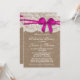 Pink Bow Burlap & Lace Wedding Rehearsal Dinner Invitation
