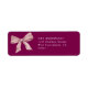 Elegant christmas holiday return address labels featuring a deep wine background, a beautiful pink watercolor bow, your family name, and address.
