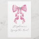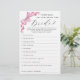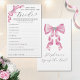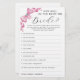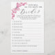 This bridal shower game card is How well do you know the Bride? It has 10 questions for players to answer. The design features a chic silky pink bow with faux rhinestones. Personalise the back of the cards with the bride's name. Matching products available.
