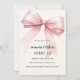 A soft beige, cream coloured background, decorated with a pink large bow. Personalise and add a name and party details.