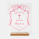 Pink Bow Crest Baptism Welcome Acrylic Sign