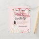 An elegant blush pink background, decorated with a large pink bow, pink flowers and a girl in a cream coloured dress. Personalise and add a name and details.