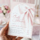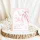 Pink Bow Elegant Baby Shower Invitation. This elegant invitation features a charming blush pink bow and romantic handwritten script, perfect for a whimsical baby girl shower. The chic ribbon and preppy design add a touch of sophistication, while the editable template allows for easy customisation. Create a beautiful and memorable invitation for your special event.