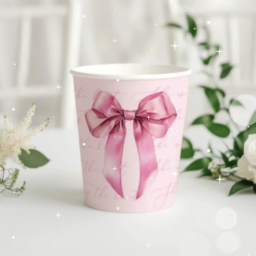 Pink Bow Elegant calligraphy Baby Shower Paper Coaster