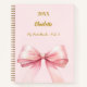 A soft blush pink background, decorated with a large bow. Personalise and add a year, name and text.