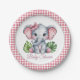 Pink Bow Elephant Girl Baby Shower Paper Plate