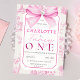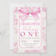 Pink Bow Fancy One Girl Chic Coquette 1st Birthday Invitation