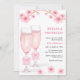 Pink Bow Floral Petals and Prosecco Bridal Shower Invitation