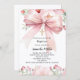 Pink bow florals girl Baptism Invitation
