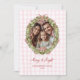 Pink Bow Gingham Christmas Wreath Photo Holiday Card