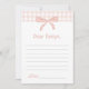 Featuring soft pink gingham and a blush bow, this time capsule note card invites guests to leave heartfelt notes and memories to be opened in the years to come.