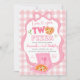 Pink Bow GinghamLove you TWO pizza birthday Invitation