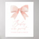 Invite friends and family to take a treat at you or a loved one's baby shower with this pink bow themed sign.