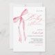 A perfect way to celebrate a girl baby shower with this elegant pink coquette bow theme. Shower the mother-to-be with this pretty and pink ribbon and bow theme baby shower. Invite your girl friends with this baby shower invitation featuring a hand drawn sophisticated blush pink bow accent.