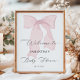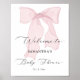 Welcome guests in style with this Pink Bow Baby Shower Welcome Sign! Featuring a beautifully illustrated bow, soft pastel pink tones, and elegant typography, this sign sets the perfect tone for a sophisticated and memorable celebration. Personalise it with the mum-to-be’s name and event details for a unique touch!