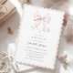 Minimal baptism invitation that features an elegant pink bow and elegant typography.
