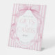 Pink Bow Girl Coquette Striped Baby Shower Gift Pedestal Sign