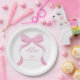 Pink Bow Girl First Birthday Paper Plate