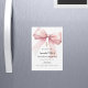 A white background, decorated with a pink large bow and a golden cross. Personalise and add a name and details details.