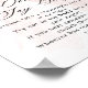 My thoughts on this product was excellent. Well printed in a gloss finishing and just the size l ordered. It arrived in good condition and am overall satisfied with the product. The printing turned out great. I was quite surprised with the finishing touch to the poster. The semi gloss was just right and a perfect size to display at the wedding.