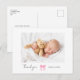 Pink Bow Girl Photo Modern Baby Shower Thank You Postcard