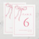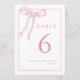 Pink Bow Girly Coquette Table Number