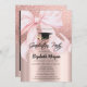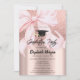 Pink Bow Grad Cap Rose Gold Glitter Graduation Invitation