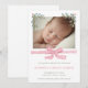 Introduce your new baby with this cute, Christmas themed birth announcement with a delicate hand painted frame with a pink bow and winter greenery. Customize it with your baby’s name, photo and birth stats.