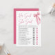 Pink Bow He Said She Said Bridal Shower Game Invitation