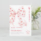 Elegant and adorable baby shower invitation featuring a soft pink ribbon adorned with red hearts, set against a crisp white background. Perfect for celebrating a special mum-to-be! Fully customisable with your event details, including name, date, time, location, RSVP information, and more.
