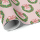 Pink Bow Holiday Wreath Wrapping Paper