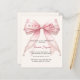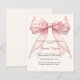An elegant soft ivory background, decorated with a large pink bow with pearls. Personalize and add a name and party details.