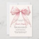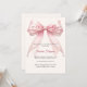 An elegant soft ivory background, decorated with a large pink bow with pearls. Personalize and add a name and party details.