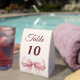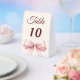 A soft ivory colored background, decorated with a large pink bow. Add your table numbers one by one.