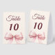 Pink bow ivory party table number