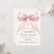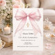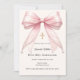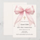 Pink bow ivory pearls girl elegant First Communion Invitation