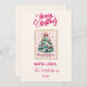 A charming pastel Christmas design featuring a beautifully decorated tree adorned with pink ribbons, candy ornaments, and a glowing gold frame over a soft striped background. Perfect for coquette, girly, or vintage holiday themes, this aesthetic blend of blush pink and mint green captures the magic of a sweet, feminine Christmas.