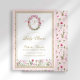 Invite loved ones to a beautiful garden-themed celebration with this "Monogram Wildflower Crest" baby shower invitation. Featuring a delicate watercolor floral arrangement of pink roses and garden blooms, a preppy blue bow, and a soft scalloped border, this elegant card sets a graceful tone for your special day. Easily personalise the event details to create a timeless keepsake for your classic nursery or tea party celebration.