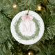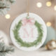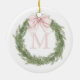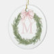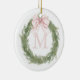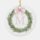 Pink Bow Monogram Wreath Christmas Ceramic Ornament
